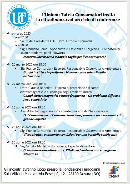 L'Unione Tutela Consumatori invita la cittadinanza ad un ciclo di conferenze